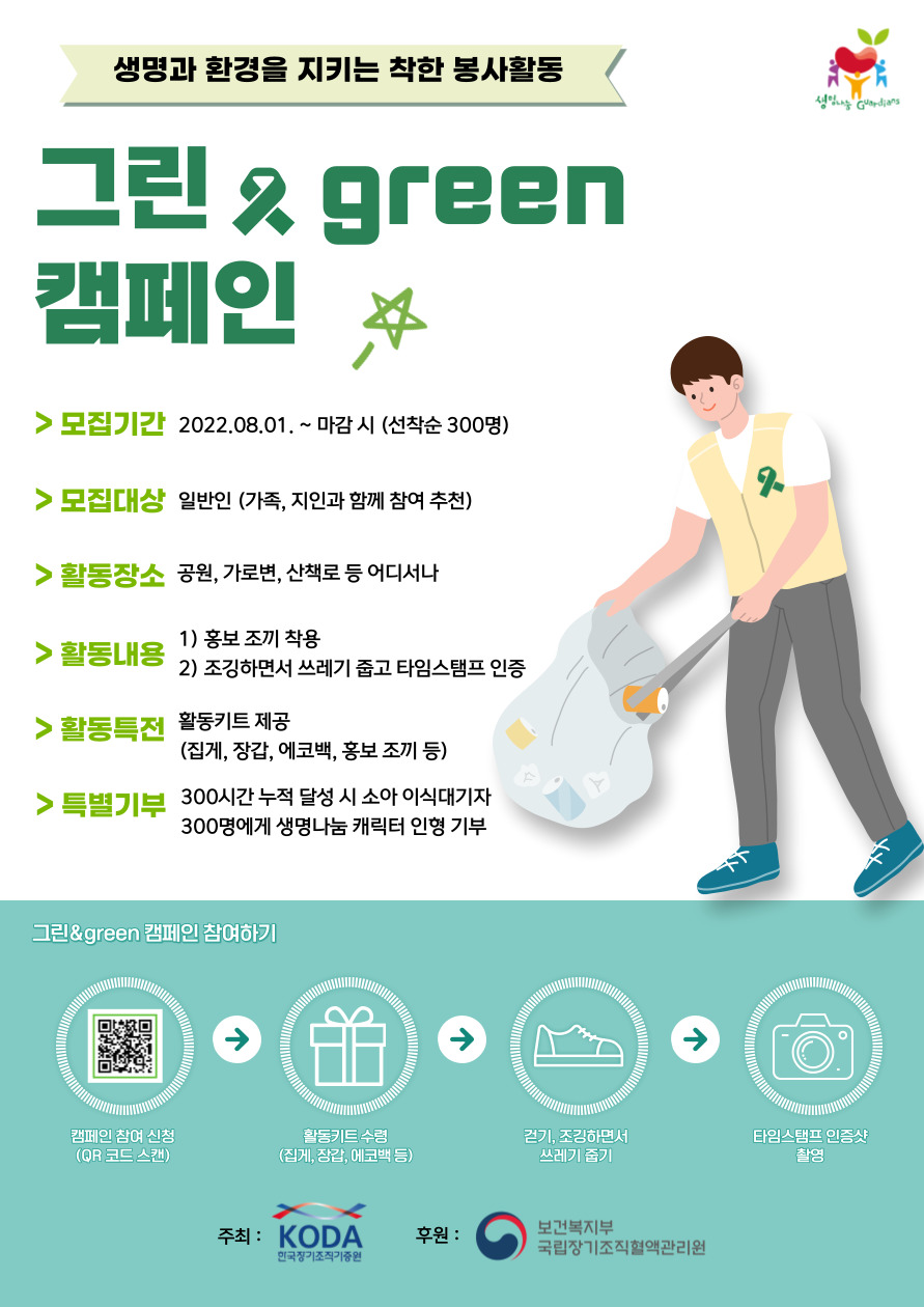 KODA와 함께하는 <그린&green> 플로깅 캠페인 참여자 모집