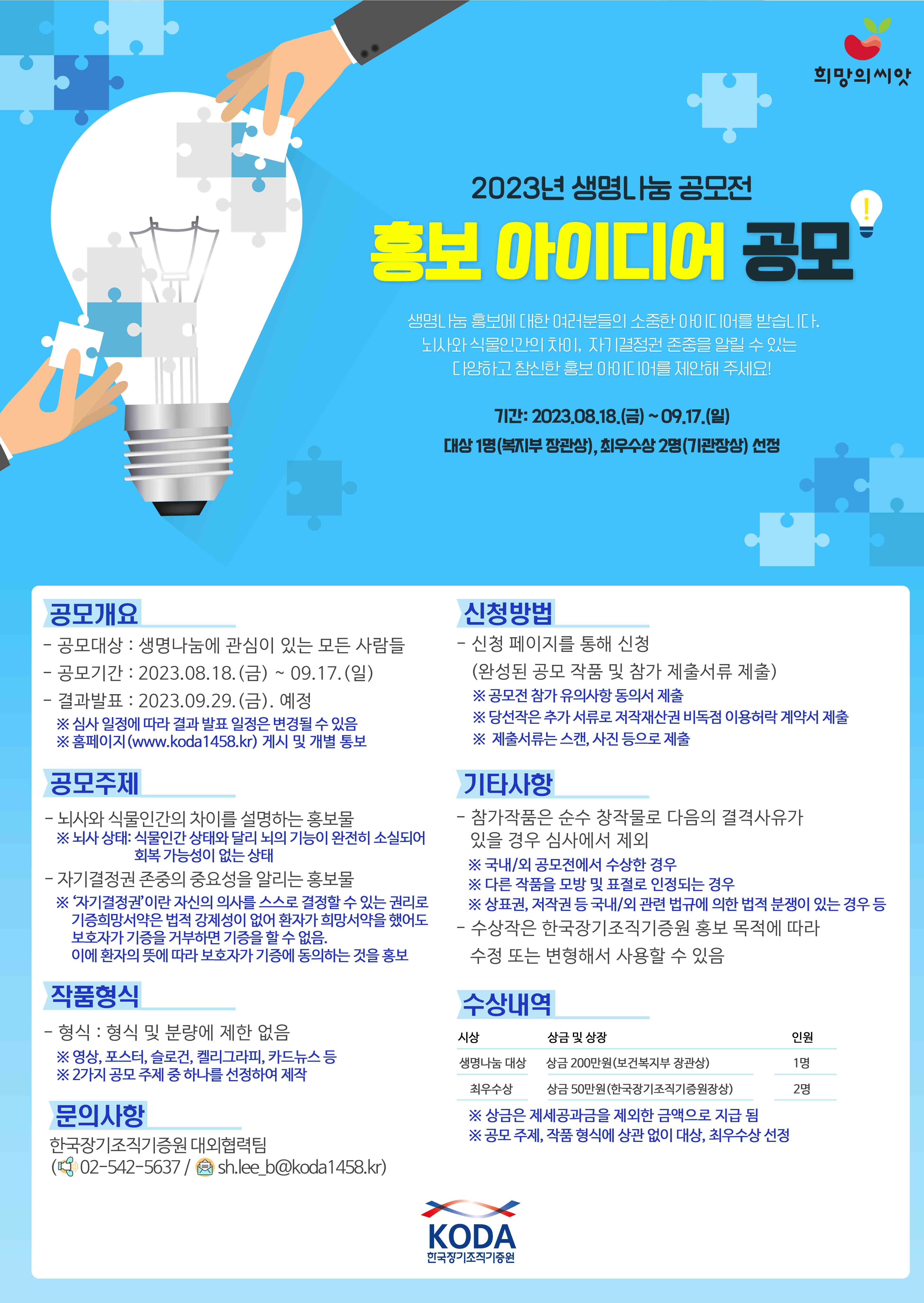 <2023년 생명나눔 공모전 : 생명나눔 홍보 아이디어 공모전 안내>