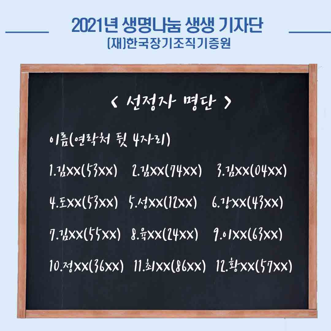 * 2021년 생명나눔 생생 기자단 선정자 발표 *