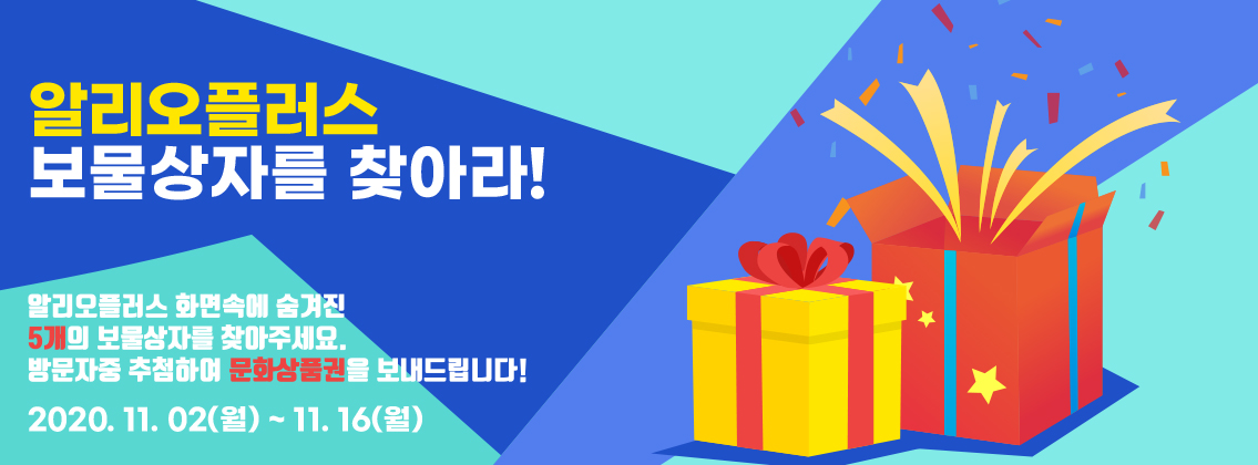 알리오플러스 화면 속에 숨겨진 5개의 보물상자를 찾아주세요.