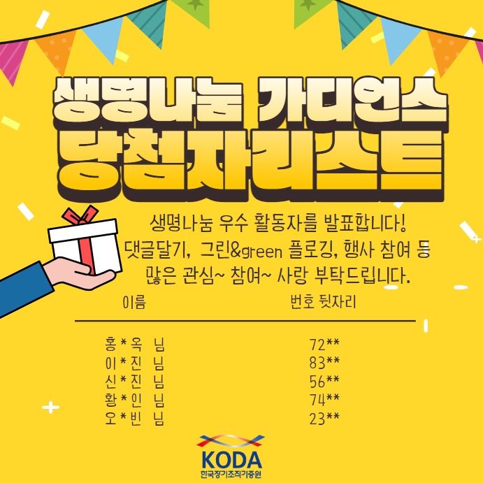 매달 한국장기조직기증원에서는 우수 활동자를 선정하고 있습니다!