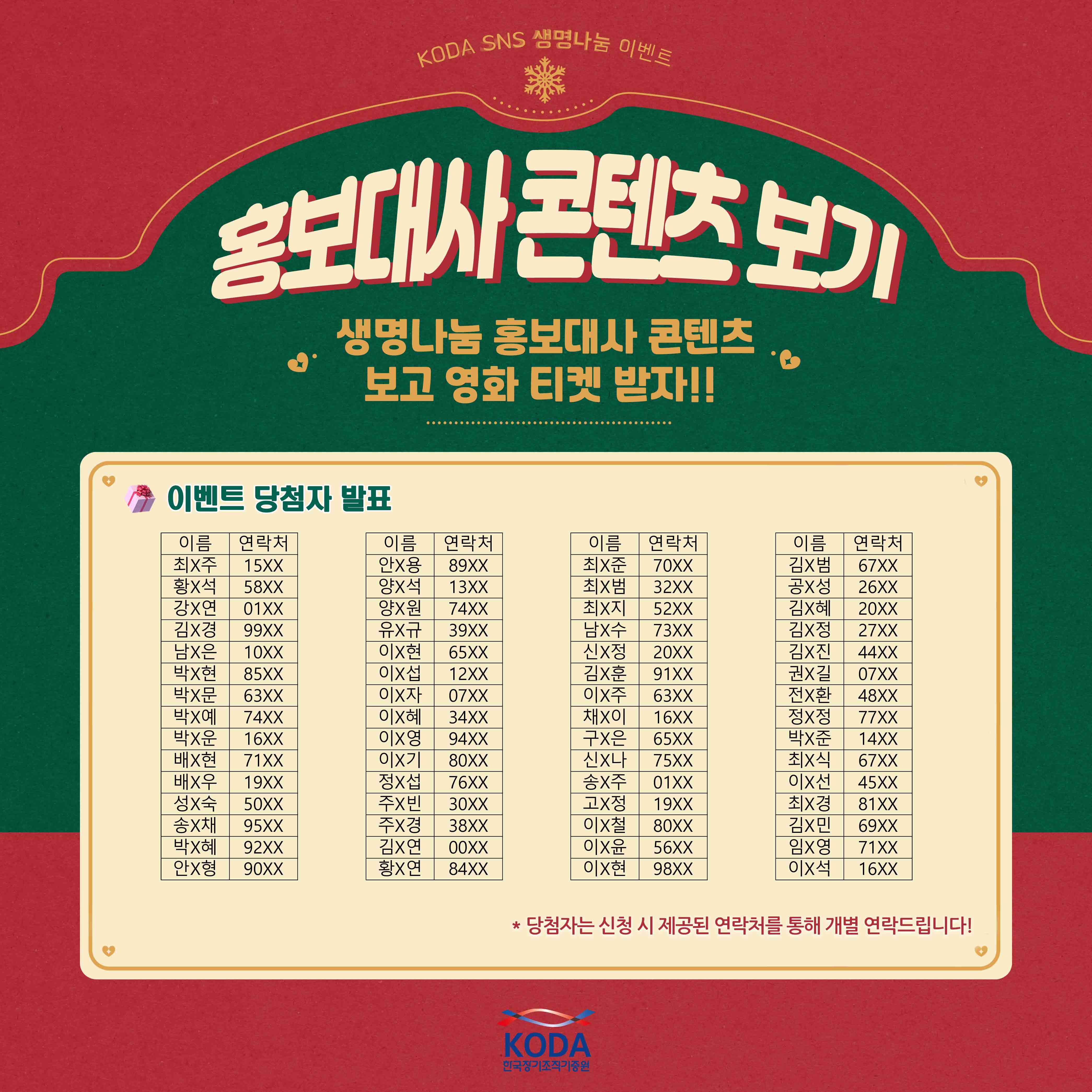 [이벤트] 생명나눔 홍보대사 콘텐츠 보기 이벤트 당첨자 발표