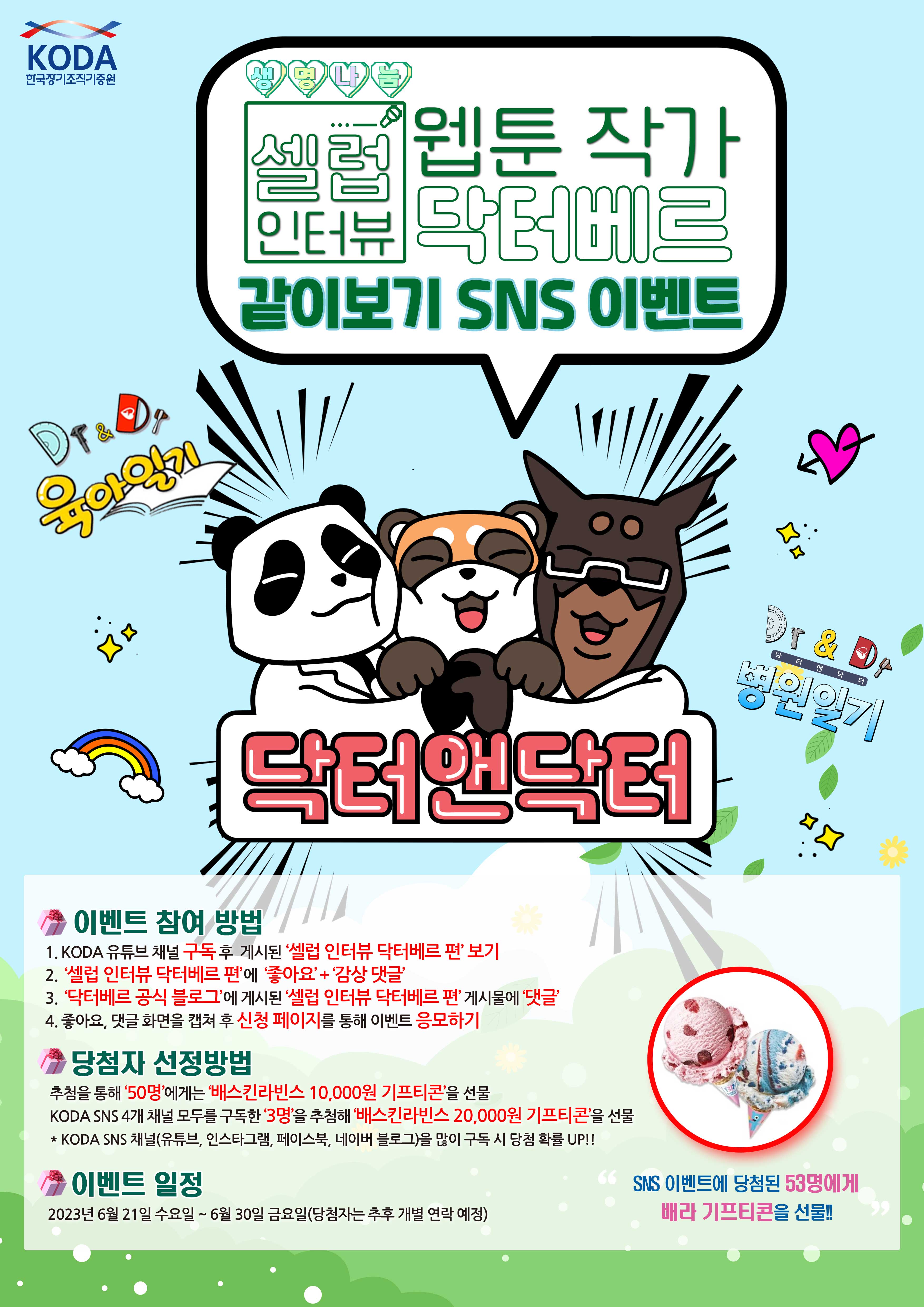 KODA SNS 4개 채널 모두를 구독한 ‘3명’을 추첨해 ‘배스킨라빈스 20,000원 기프티콘’을 선물