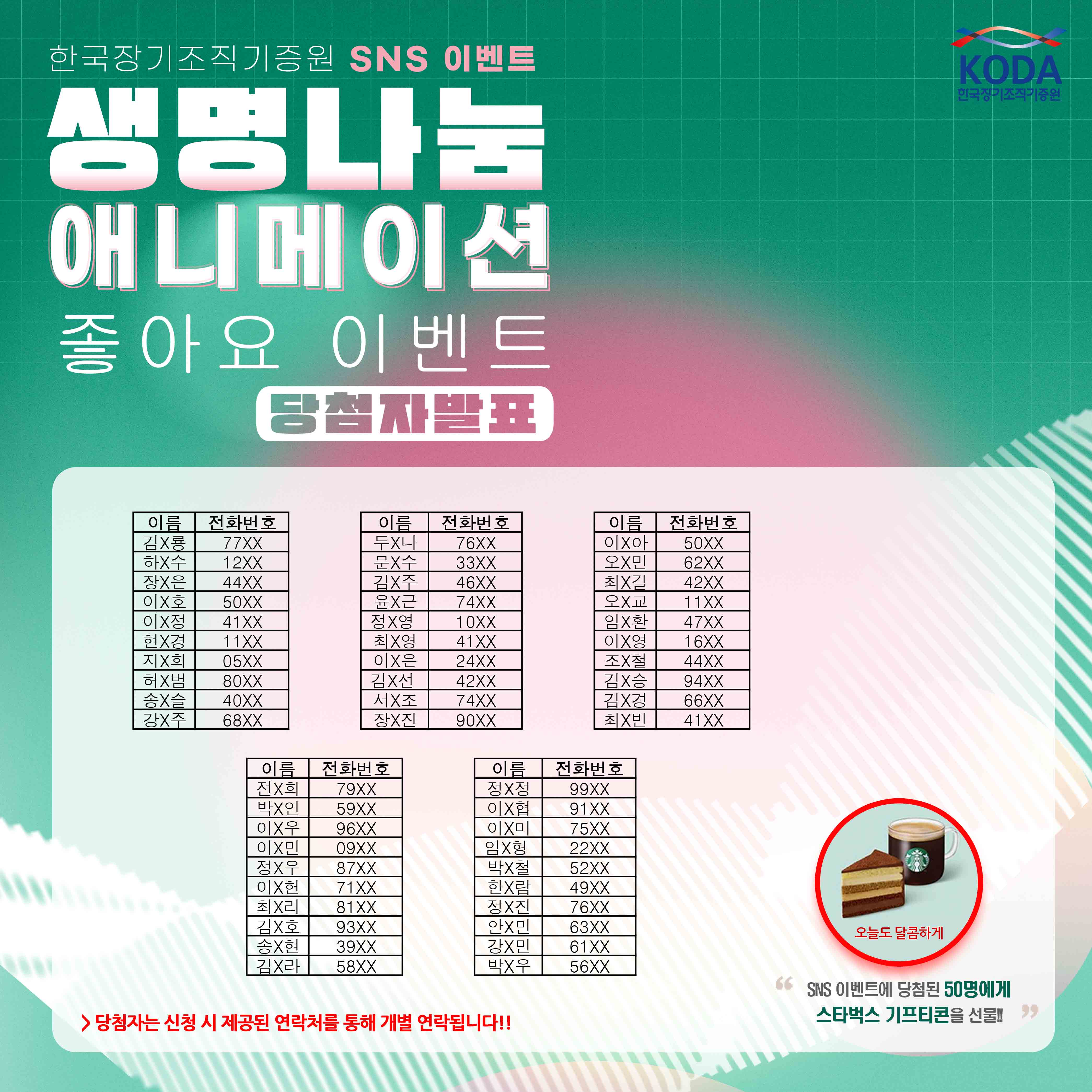 ★★이벤트 결과발표★★ 한국장기조직기증원 생명나눔 애니메이션 좋아요 이벤트