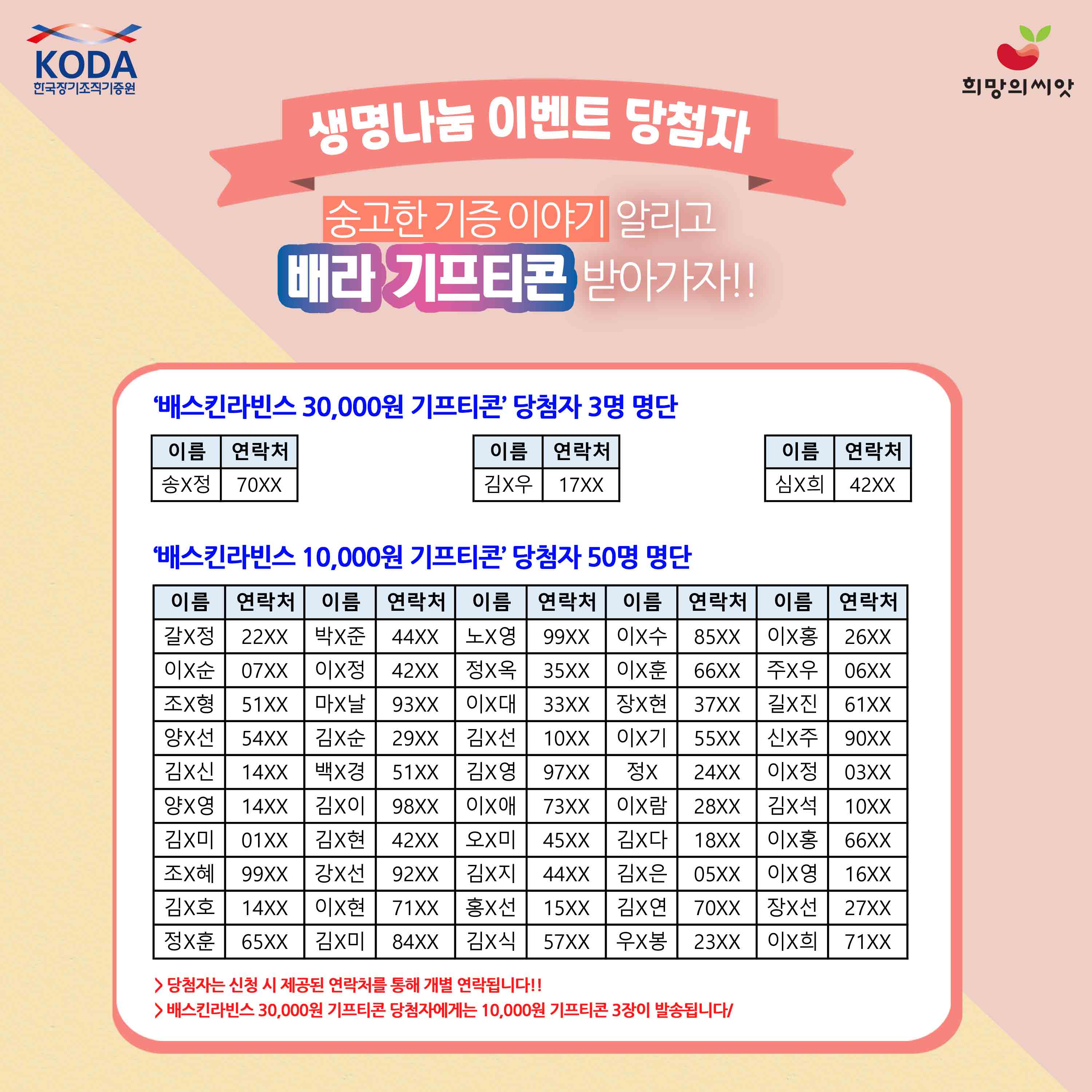 ‘배스킨라빈스 10,000원 기프티콘’ 당첨자 50명 명단