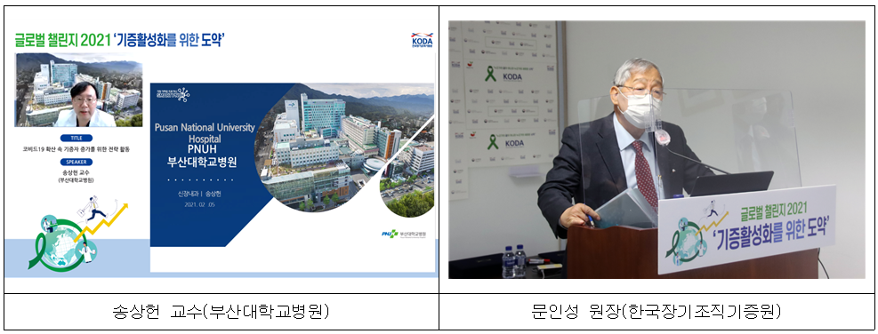 □ 한국장기조직기증원(원장 문인성)은 공공기관 5년이 되는 시점에서 의료 현장의 대응 상황을 점검하고, 정부·의료계와 협력방안을 모색하여 장기기증활성화 재도약을 위해 2월 5일(금) “글로벌챌린지 2021”을 개최하였다.