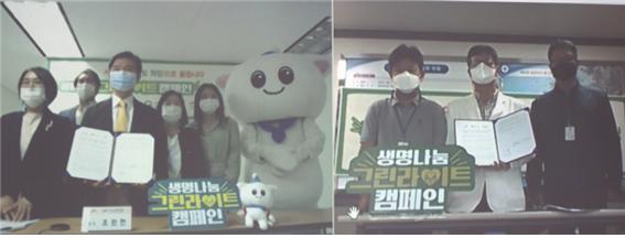 협약식은 코로나 예방을 위해 비대면 온라인으로 이루어졌으며, 10월 12일부터 16일 전국 주요 대교 및 랜드마크에 그린라이트를 밝혀 생명나눔 캠페인에 동참할 예정이다.
