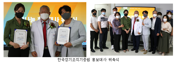 두 명의 홍보대사에게 위촉장을 전달하면서 한국장기조직기증원 문인성 원장은 “우리나라에 매일 장기이식을 받으면 살 수 있는 분이 6.8명이 돌아가시고 1년에 약 2천 5백명이 안타까운 죽음을 맞이하신다. 우리는  한 분이라도 더 살리기 위해 노력하는 있으며, 오늘 위촉된 홍보대사의 역할이 중요하다고 생각한다. 생명나눔 활동에 동참해준 이 아름다운 마음씨가 종소리가 널리 울려퍼지듯 사회 곳곳에 희망을 전달하길 바란다.”며 감사와 부탁의 말을 전했다.