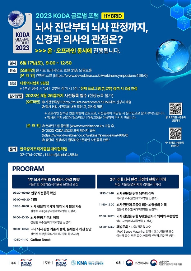 2부 국내 뇌사 판정 과정의 현황과 이해(좌장: 대한신경과학회 김재문 이사장)