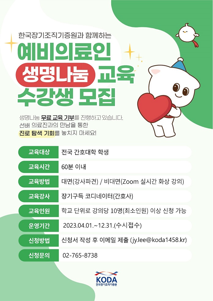 예비의료인 생명나눔 교육 수강생 모집 안내