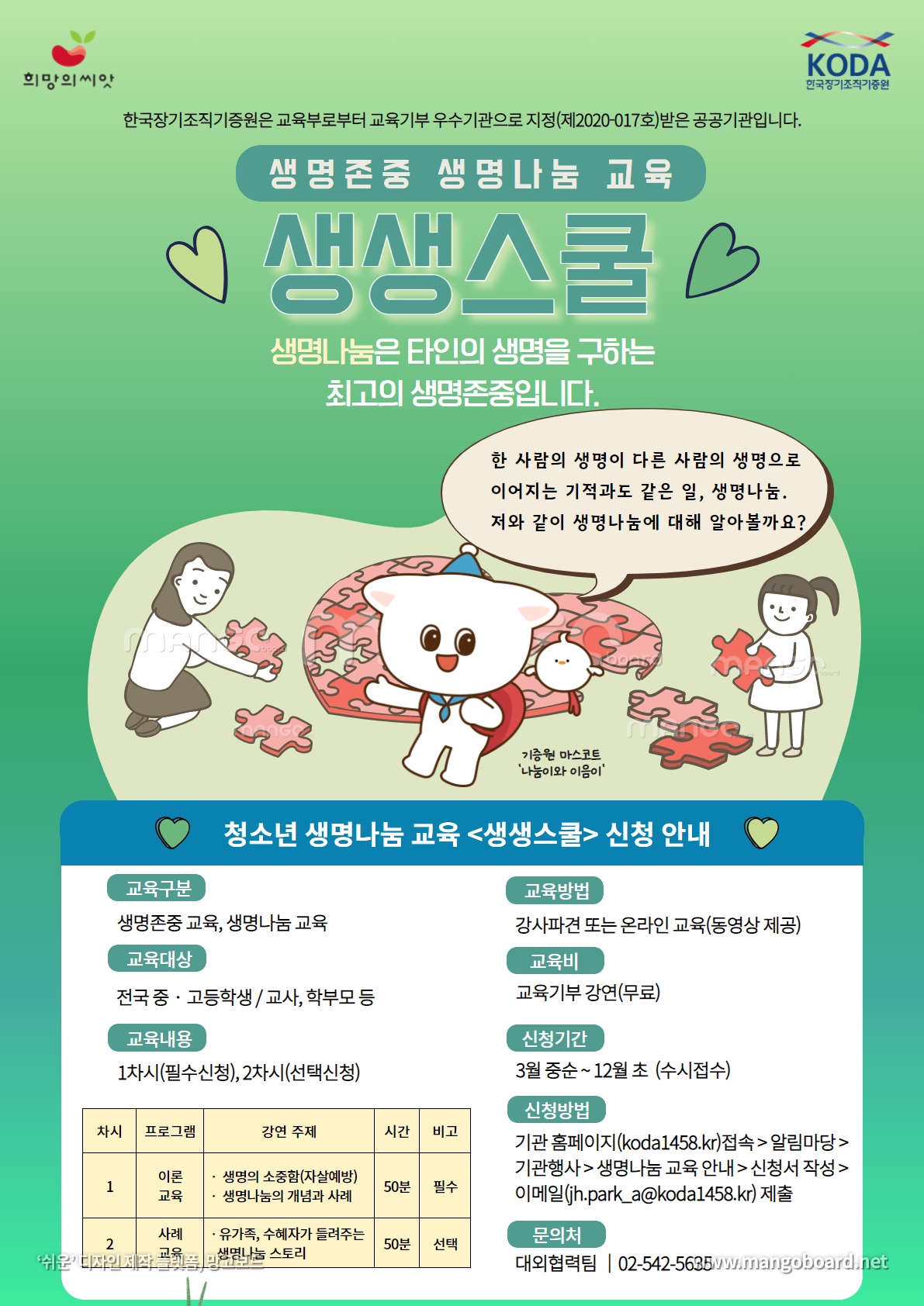생명존중 생명나눔 교육기부 강연 신청 안내