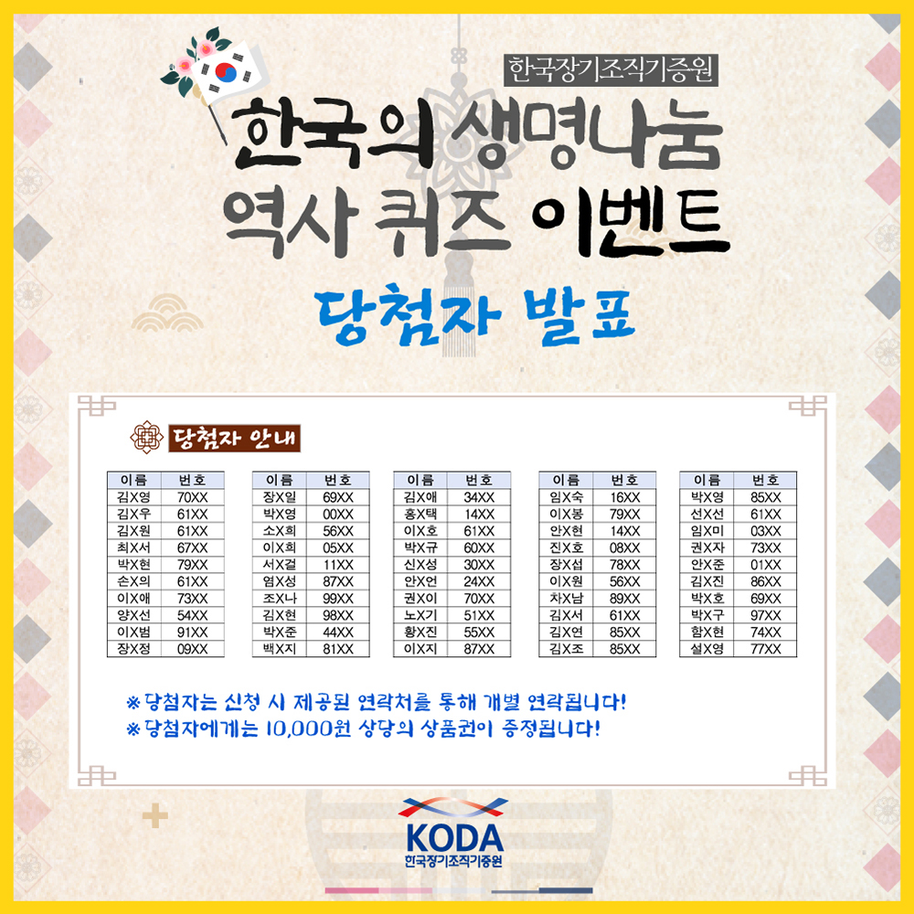 [이벤트] 한국의 생명나눔 역사 퀴즈 SNS 이벤트 당첨자 발표