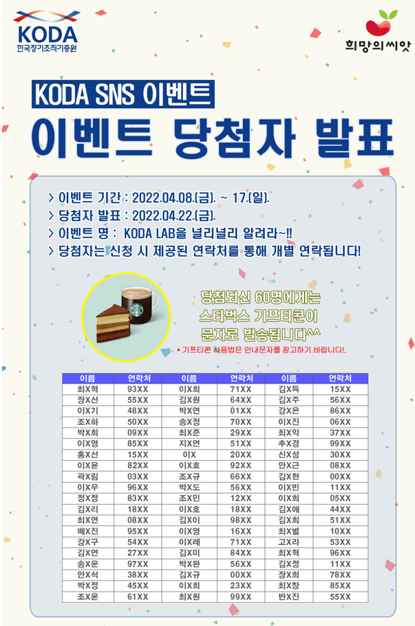 KODA SNS 이벤트 당첨자 발표