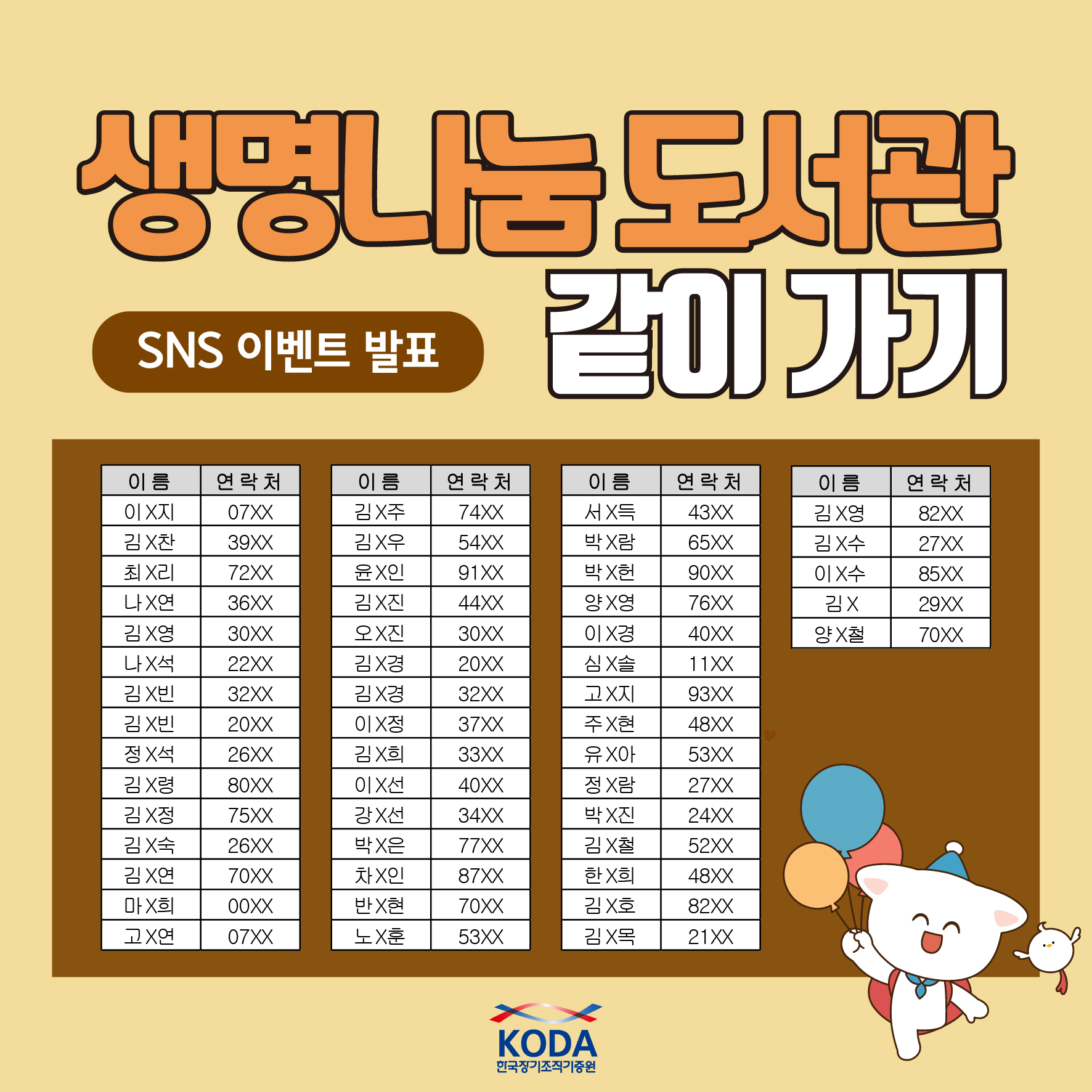 [이벤트 결과] 생명나눔 도서관 같이가기 이벤트 당첨자 발표