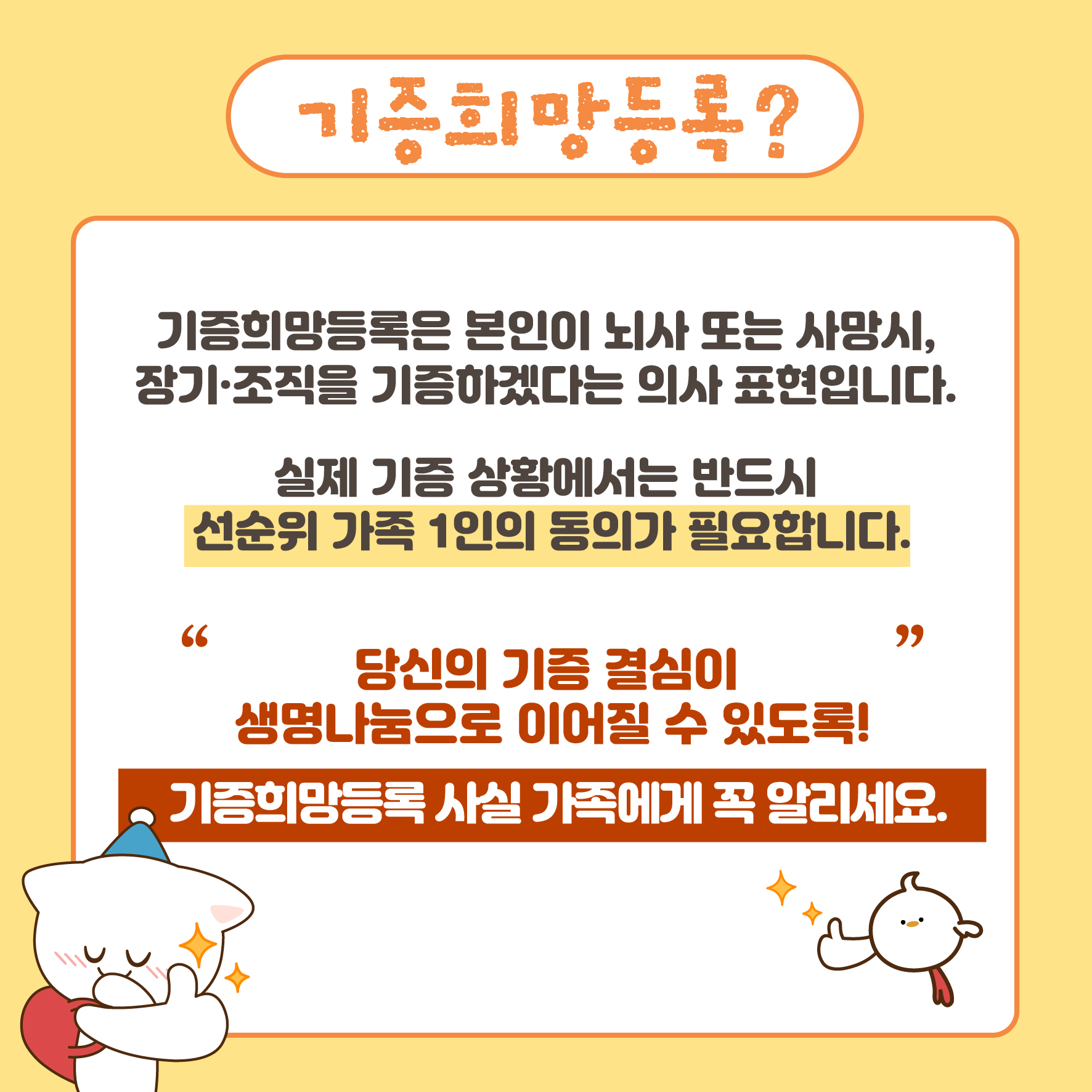 (실제 기증시점에서 선순위가족 1인의 기증동의가 반드시 필요합니다.)