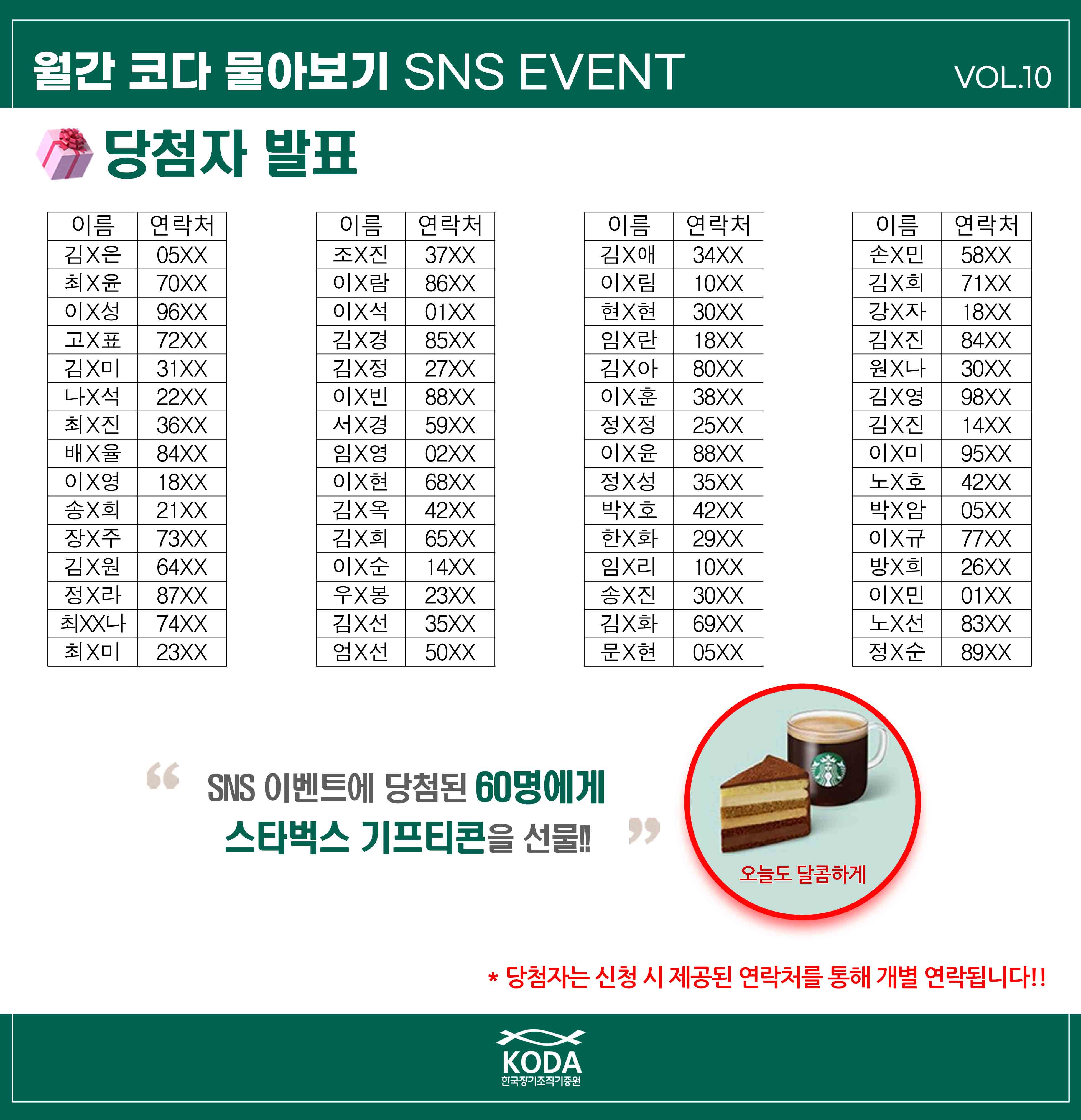 "SNS 이벤트에 당첨된 60명에게 스타벅스 기프티콘을 선물!!"