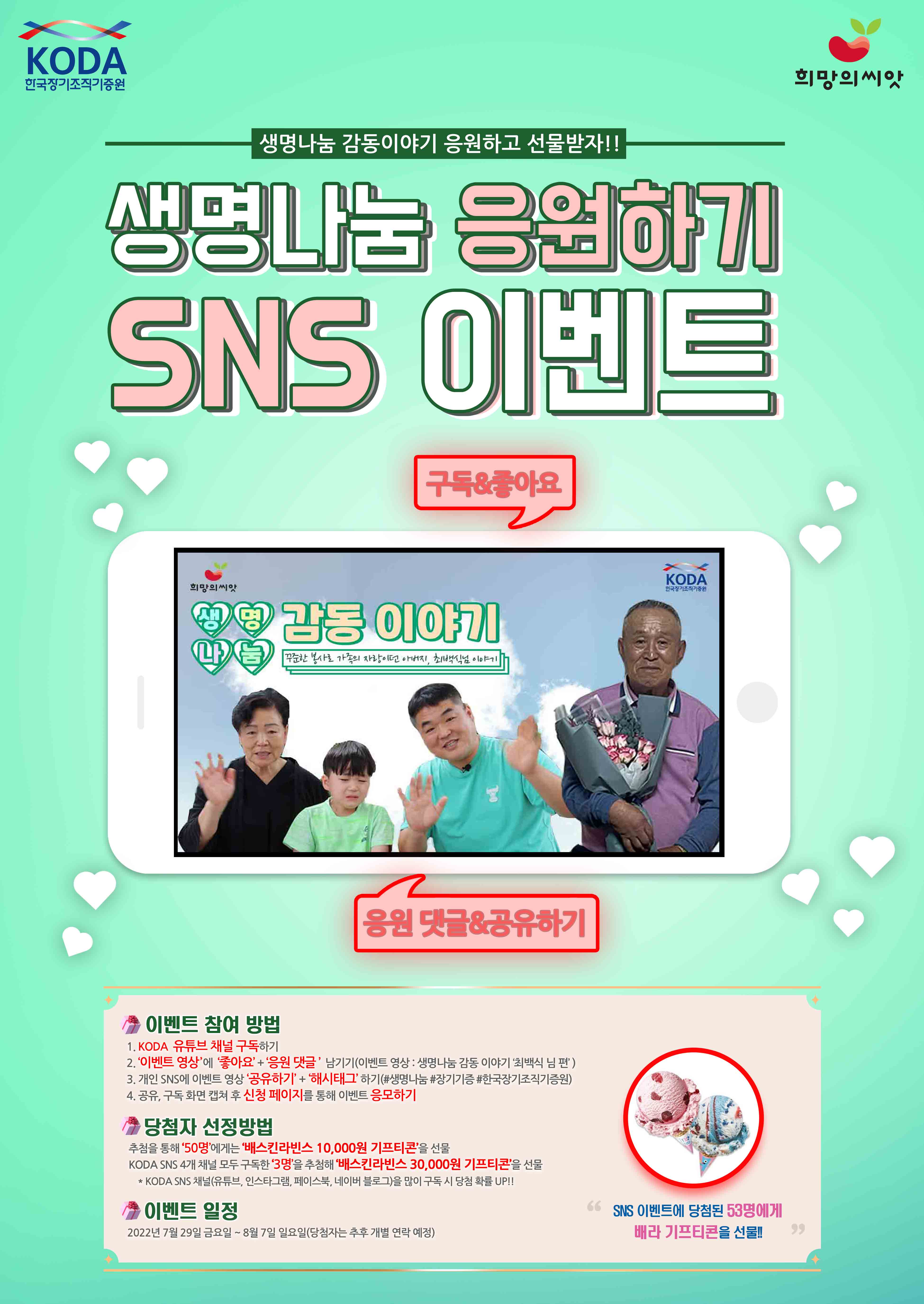 <생명나눔 응원하기 SNS 이벤트> 생명나눔 감동이야기 응원하고 선물받자!!