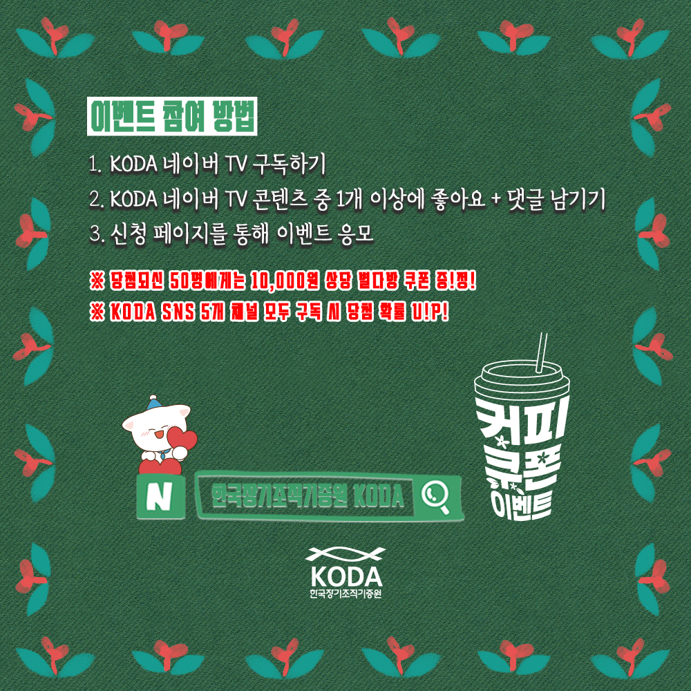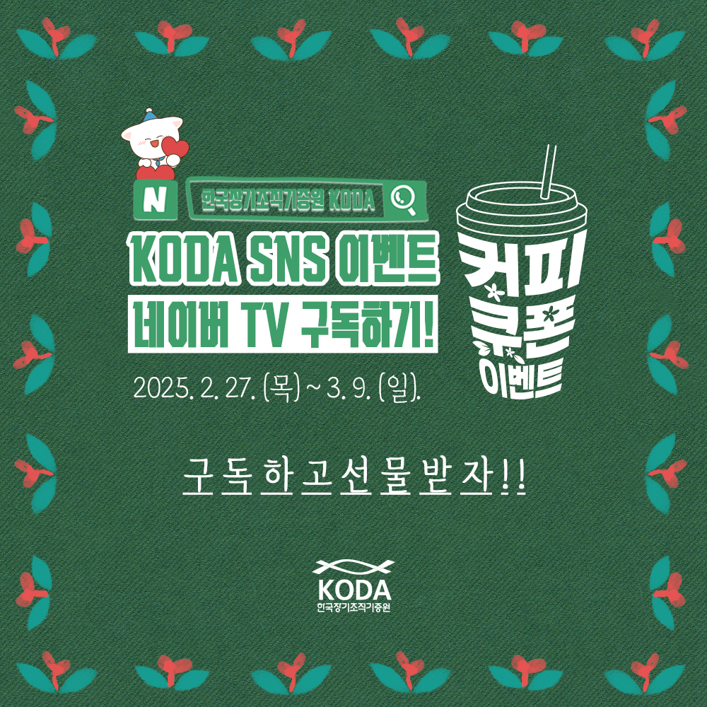 2025년 새롭게 오픈한 KODA 네이버 TV 채널을 구독하면 별다방 기프티콘 선물이 배달됩니다!