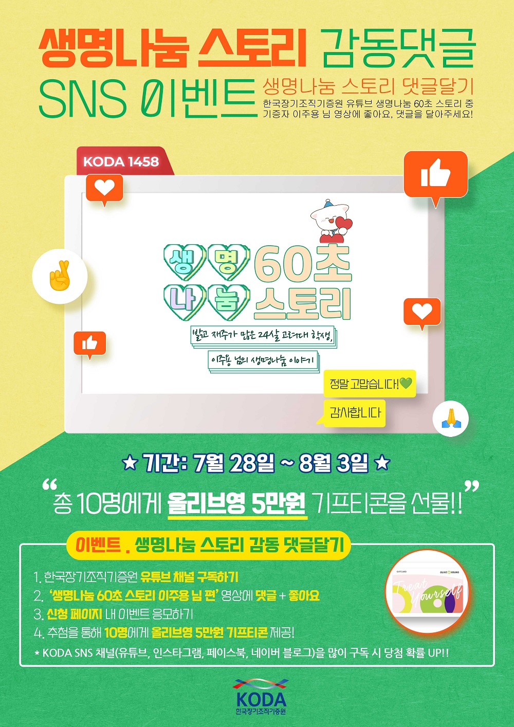 1. KODA 유튜브 채널 구독 후 게시 된 '생명나눔 60초 스토리 이주용 님 편' 보기