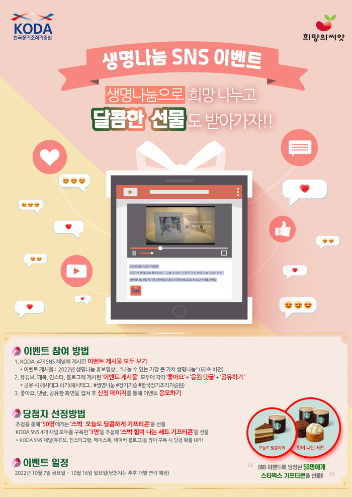 생명나눔 SNS 이벤트 '생명나눔으로 희망 나누고 달콤한 선물도 받아가자!!'