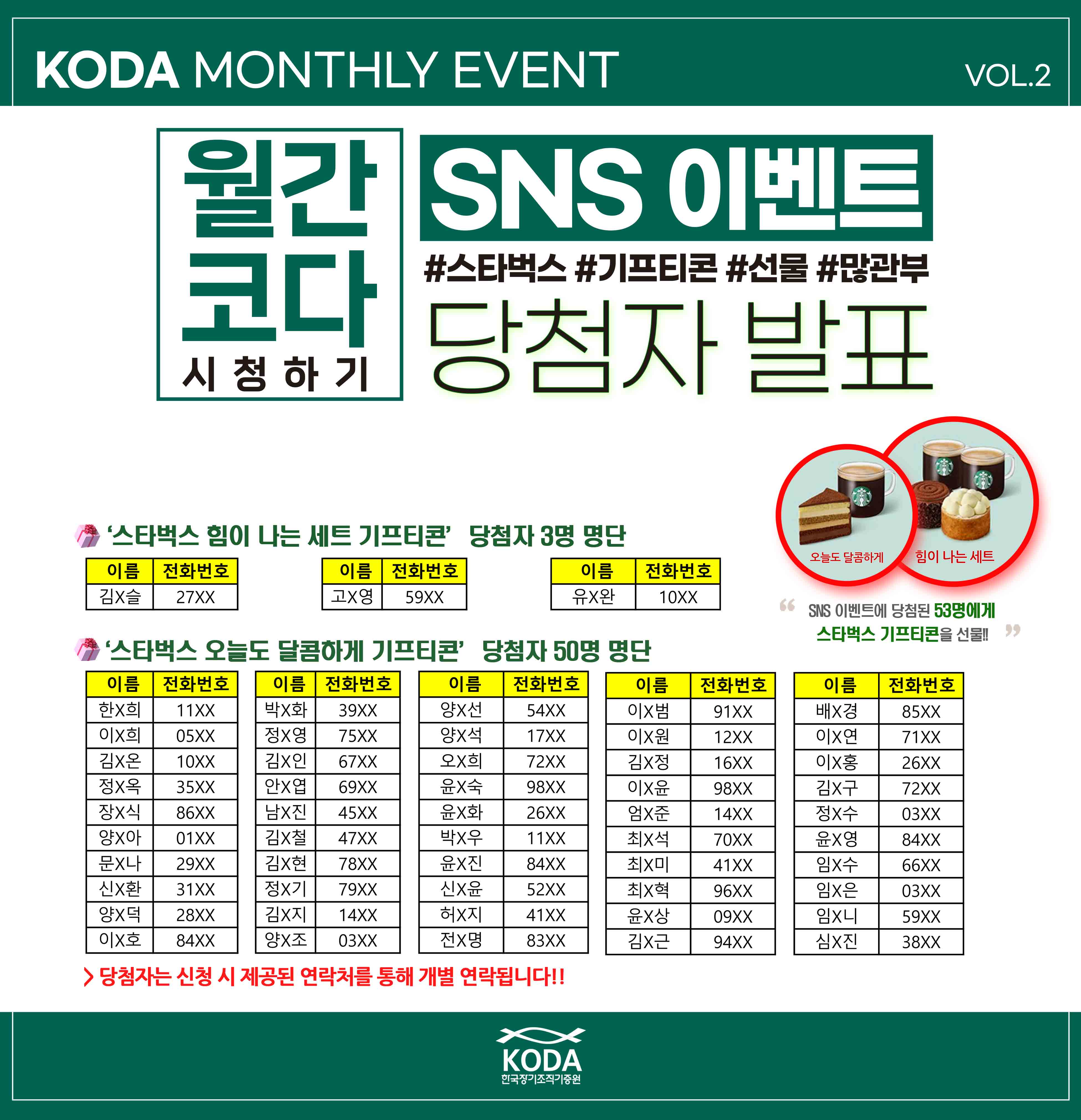 '월간 코다 시청하기' SNS 이벤트 당첨자를 발표합니다 !!