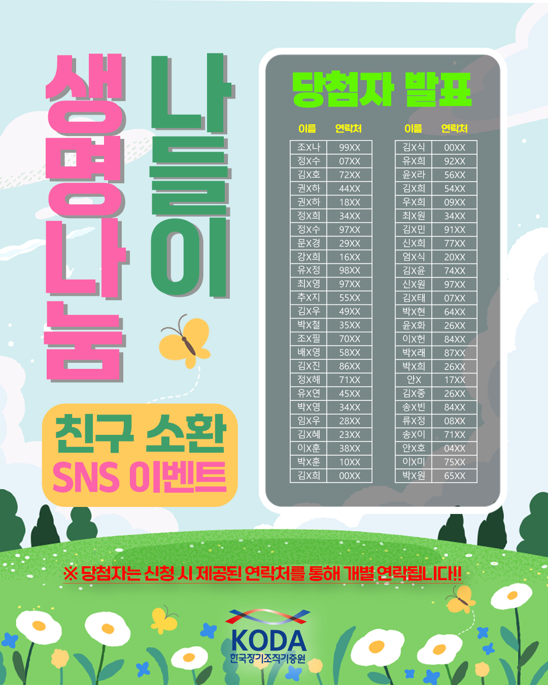 당첨자.jpg생명나눔 나들이 친구 소환하기 SNS 이벤트 담첨자 발표