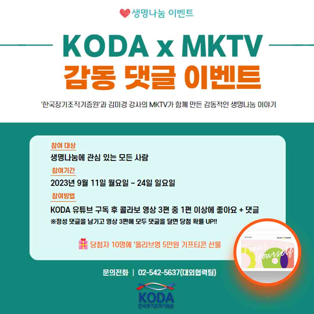 [ KODA x MKTV 생명나눔 감동 댓글 이벤트 ]
