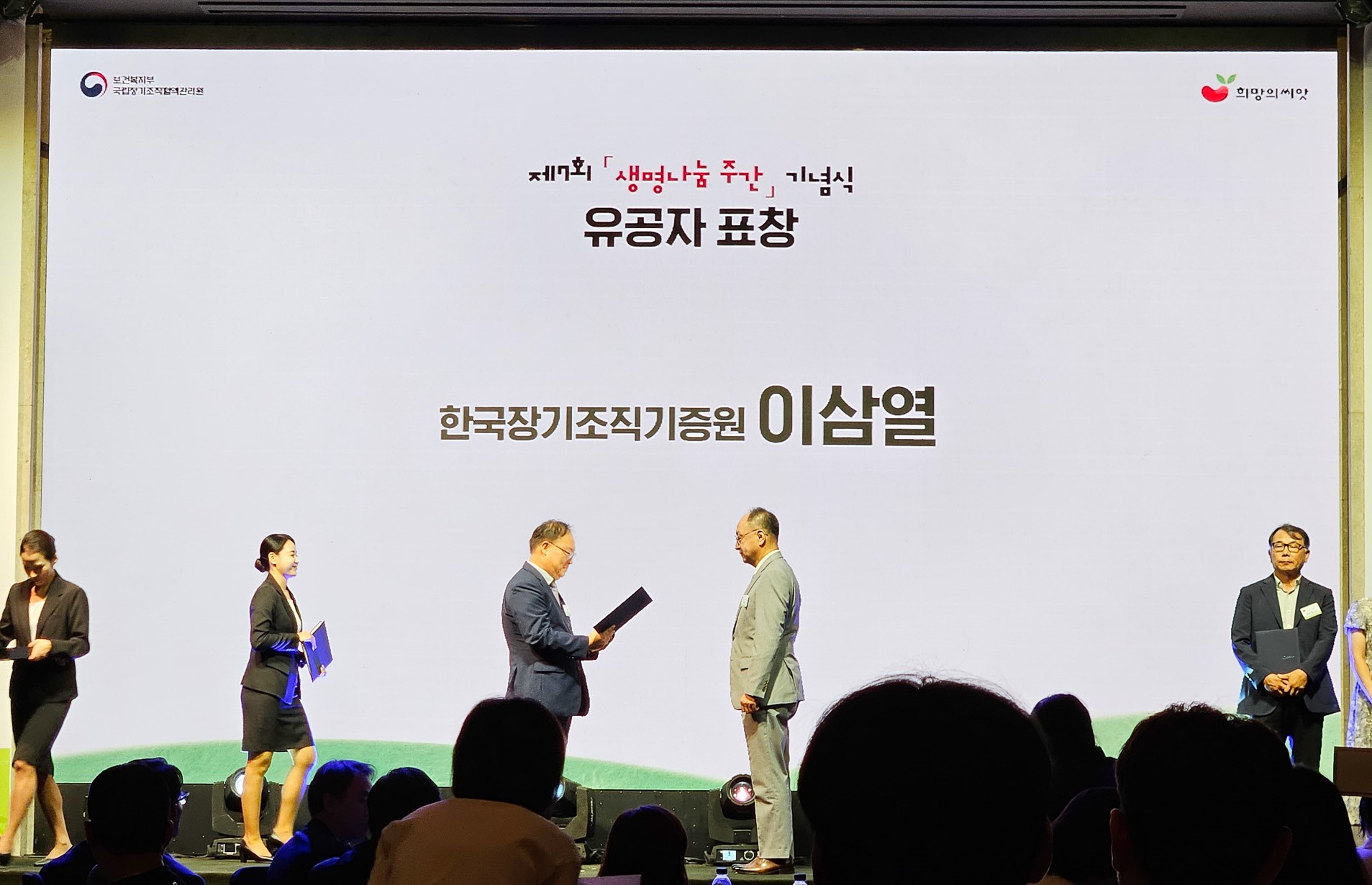 보건복지부, 제7회 생명나눔 기념식… 한국장기조직기증원, 장관 표창 수여