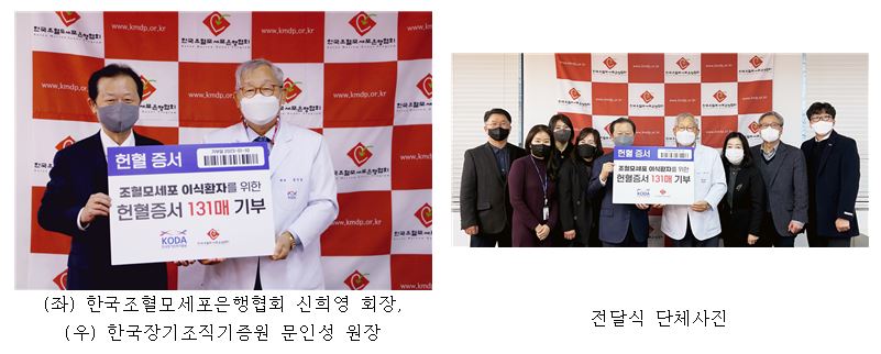 한국장기조직기증원 임직원은 자발적인 헌혈참여를 통해 총 131매의 헌혈증을 모았으며, 이는 조혈모세포 이식환자에게 지원될 예정이다.